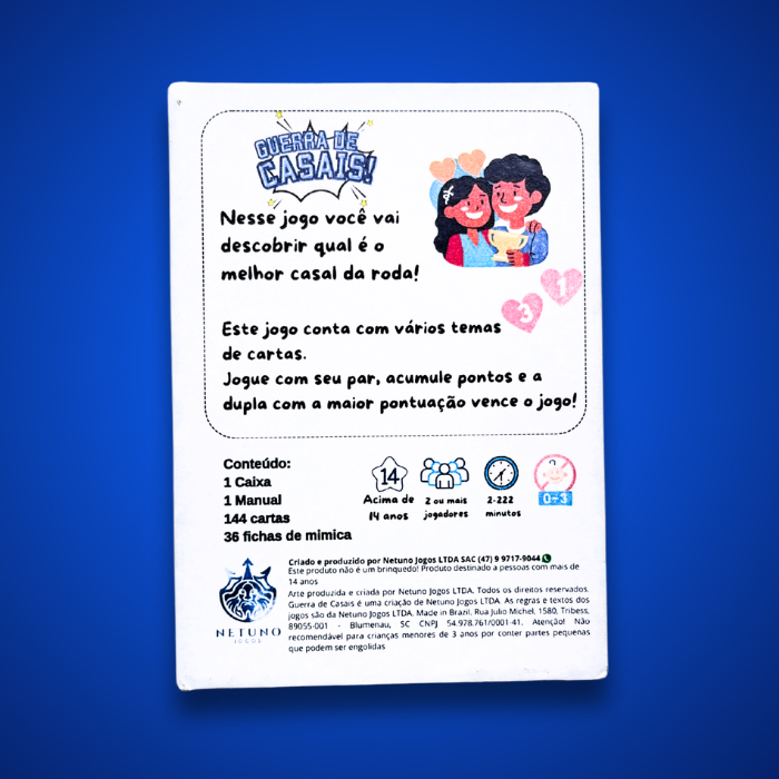 Prepare-se para uma noite de risadas, tretas leves e muitas revelações! Guerra de Casais! é o jogo ideal para descobrir se você e seu par estão mesmo na mesma sintonia.